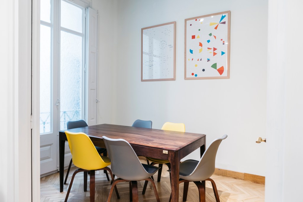 La filosofía del Cowork Rambla Catalunya es hacerte sentir como en casa. Este antiguo piso de carácter modernista, con techos altos, con la característica galería y con mucha luz, es la típica tipología del barrio del Eixample. Neus quería conservar tal esencia, convirtiéndolo en un espacio de trabajo cómodo y elegante.