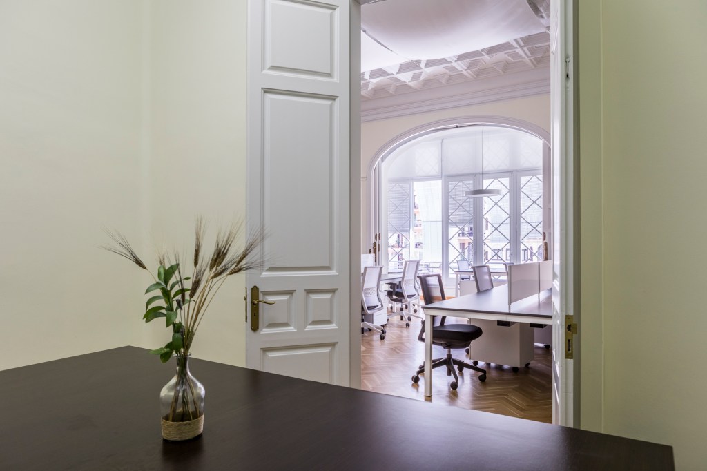 La filosofia del Cowork Rambla Catalunya és fer-te sentir com a casa. Aquest antic pis de caràcter modernista, amb sostres alts, amb la característica galeria i amb molta llum, és la típica tipologia del barri de l’Eixample. La Neus volia conservar el seu caire, convertint-lo en un espai de treball còmode i elegant.