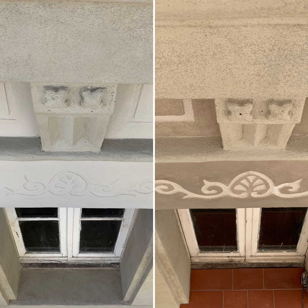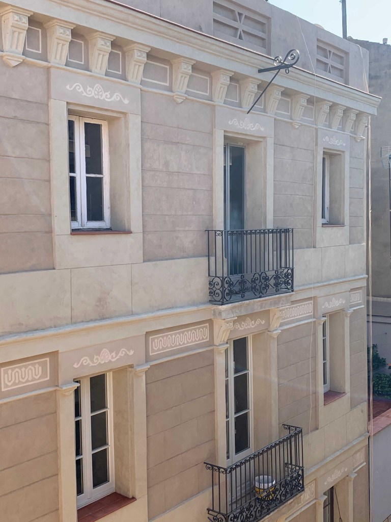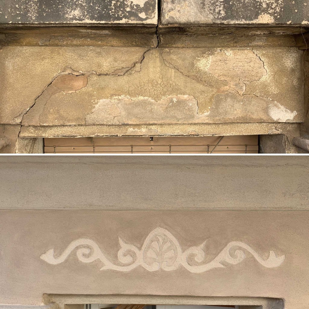 Durant aquest procés ens trobem que les llindes de les balconeres, no només han cedit, sinó que també tenen esgrafiats originals a cada planta pis.